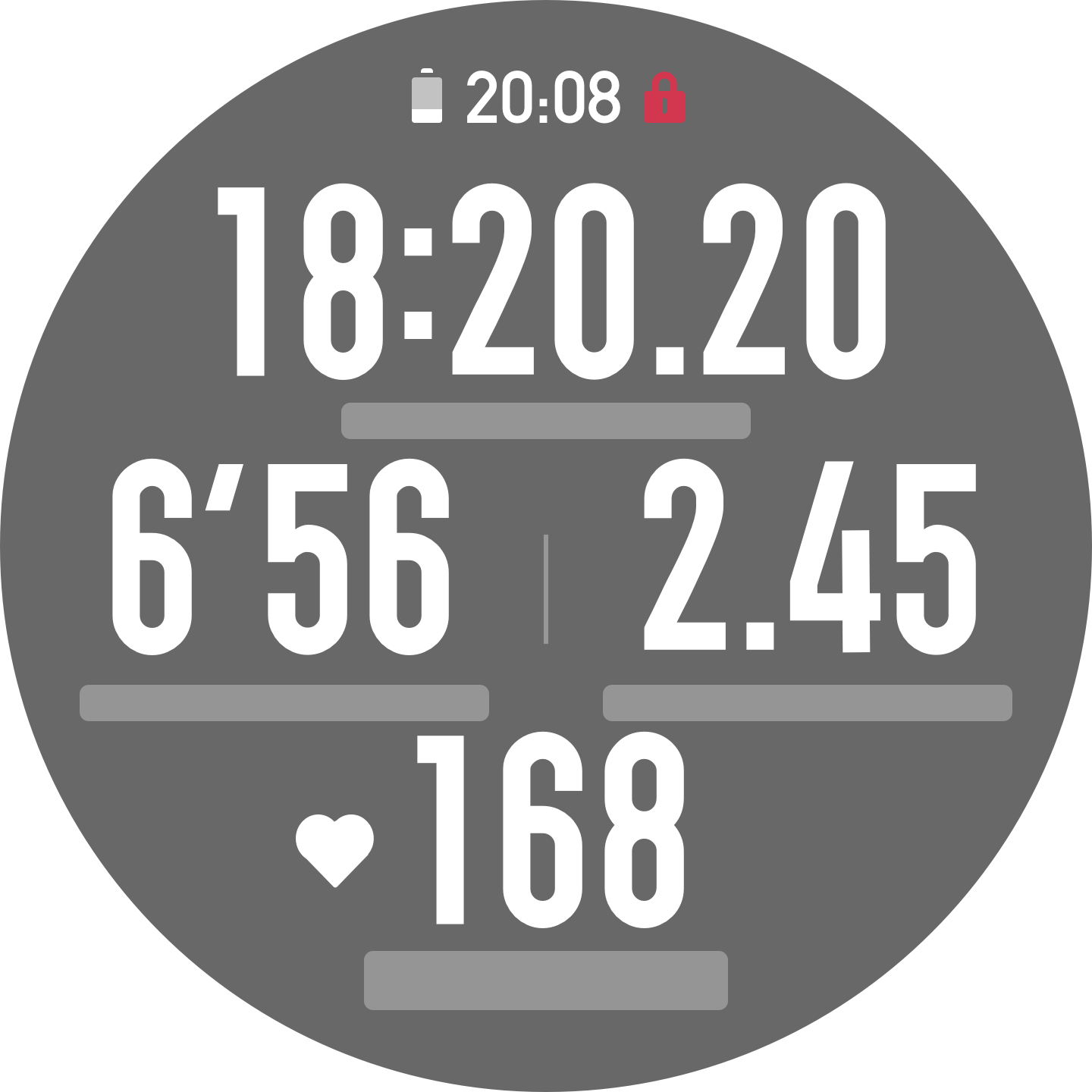 The device vibrates and displays the duration that you use for each full kilometer/mile during the workout.